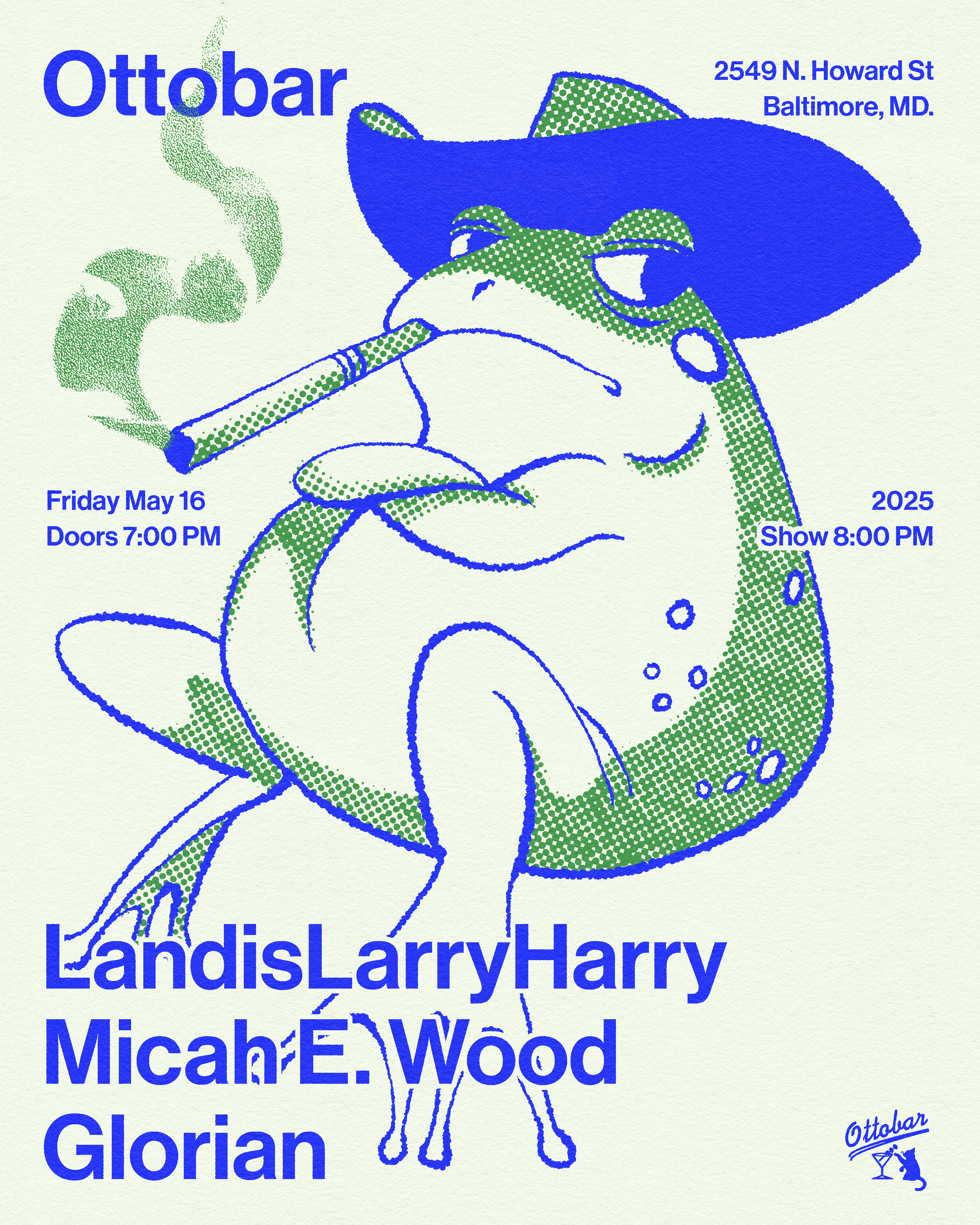 Show poster for venue space, Ottobar featuring LandisHarryLarry, Micah E. Wood, and Gloria.